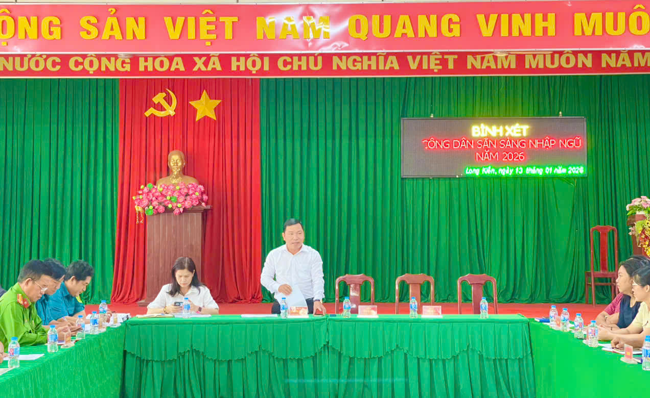 Sáng ngày 13/01/2026, Hội đồng NVQS xã Long Kiến tổ chức hội nghị bình xét công dân sẵn sàng nhập ngũ năm 2026. Đến dự có ông Dương Mai Thanh Sơn – CT. UBND xã – CT. Hội đồng NVQS xã, bà Nguyễn Thị Kim Nguyệt – PCT. HĐND xã.