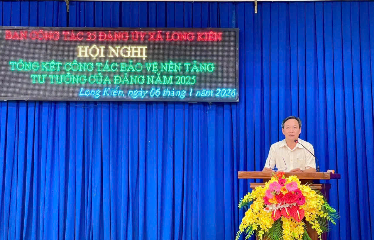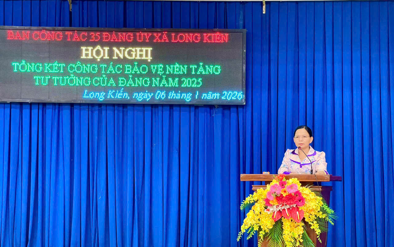 Chiều ngày 06/01/2026, Ban Công tác 35 Đảng uỷ xã Long Kiến tổ chức Hội nghị tổng kết Công tác bảo vệ nền tảng tư tưởng của Đảng năm 2025. Tham dự có đồng chí Phan Thị Diễm – Bí thư Đảng uỷ - CT. HĐND xã, đồng chí Ngô Hữu Lễ - Phó Bí thư Thường trực Đảng uỷ xã – Trưởng Ban Công tác 35 Đảng uỷ, đồng chí Nguyễn Phước Tài – PCT. UBND xã cùng các đồng chí thành viên Ban Công tác 35 Đảng uỷ.