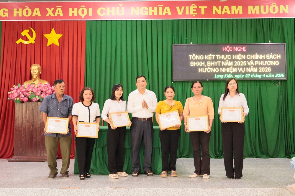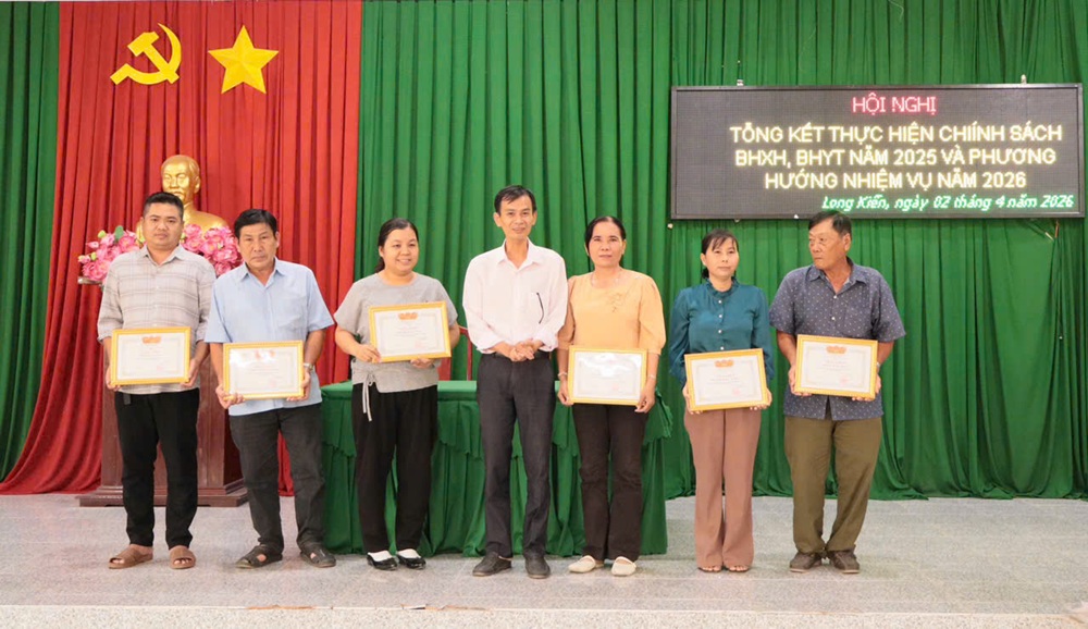 Chiều ngày 02/04/2026, Ban chỉ đạo thực hiện chính sách BHXH, BHYT, BHTN xã Long Kiến tổ chức hội nghị tổng kết thực hiện chính sách BHXH, BHYT năm 2025. Tham dự có ông Hồ Chí Cường – Uỷ viên Thường vụ - PCT. UBND xã, ông Nguyễn Văn Phước – Phó Giám đốc BHXH cơ sở Chợ Mới.