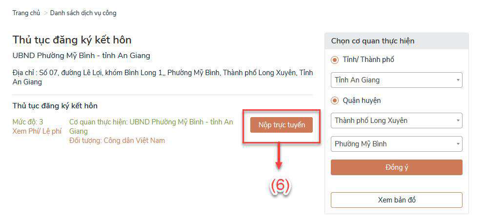 - Bước 4: Nhấn chọn “Nộp trực tuyến” (6)