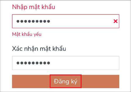 - Bước 4: Nhập mật khẩu mới và nhấn Đăng ký