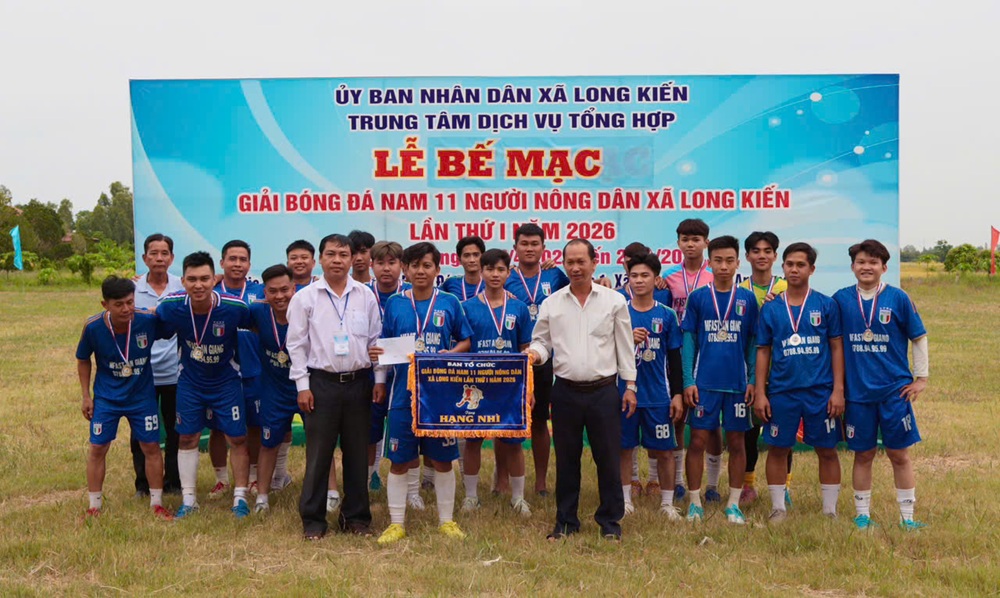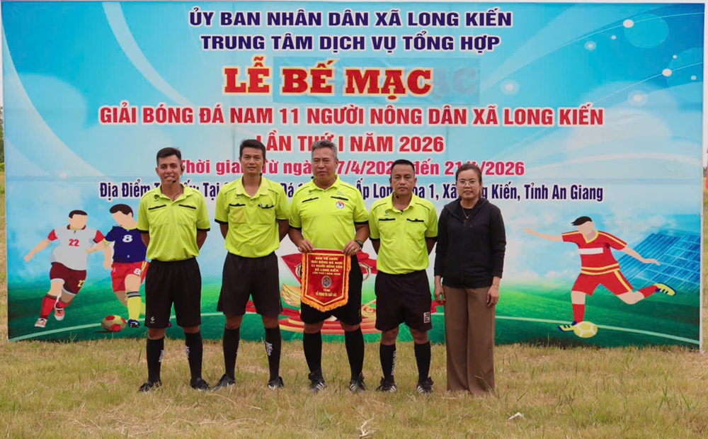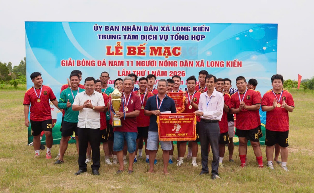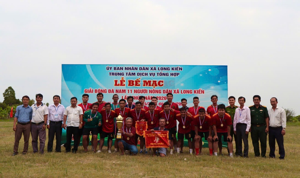 Chiều ngày 21/04/2026, tại sân bóng đá ấp Long Hòa 1, xã Long Kiến Giải bóng đá nông dân 11 người lần thứ nhất năm 2026 đã chính thức khép lại sau nhiều ngày tranh tài sôi nổi, hấp dẫn và đầy kịch tính. Tham dự buổi lễ bế mạc có ông Dương Mai Thanh Sơn – Phó Bí thư Đảng uỷ - Chủ tịch UBND xã, ông Hồ Chí Cường – Uỷ viên Thường vụ - Phó Chủ tịch UBND xã – Trưởng Ban tổ chức giải, ông Huỳnh Văn Ghi – Phó Trưởng phòng VHXH kiêm Phó Giám đốc Trung tâm Dịch vụ tổng hợp xã.