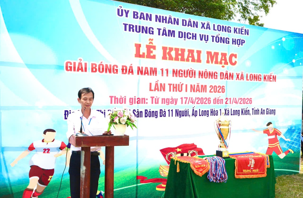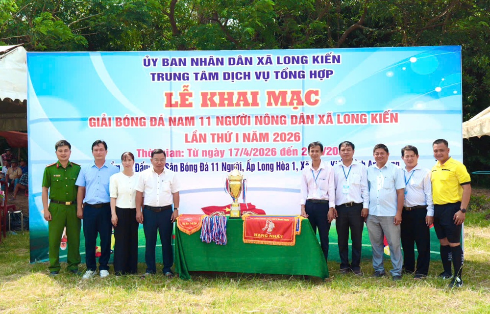 Nhằm thiết thực chào mừng kỷ niệm các ngày lễ lớn trong năm 2026 và tiến tới chào mừng kỷ niệm 51 năm ngày Miền Nam hoàn toàn giải phóng, thống nhất đất nước (30/04/1975-30/04/2026); ngày quốc tế lao động 1/5; Giỗ tổ Hùng Vương (10/03 âm lịch)….Chiều ngày, 17/04/2026, Trung tâm dịch vụ tổng hợp xã Long Kiến phối hợp với Hội nông dân xã, UBND xã tổ chức khai mạc giải bóng đá Nông dân 11 người lần thứ I năm 2026. Tham dự có ông Dương Mai Thanh Sơn – Phó Bí thư Đảng uỷ - Chủ tịch UBND xã, ông Hồ Chí Cường – Uỷ viên Thường vụ - Phó Chủ tịch UBND xã – Trưởng Ban tổ chức giải, ông Huỳnh Văn Ghi – Phó Trưởng phòng VHXH kiêm Phó Giám đốc Trung tâm dịch vụ tổng hợp xã.