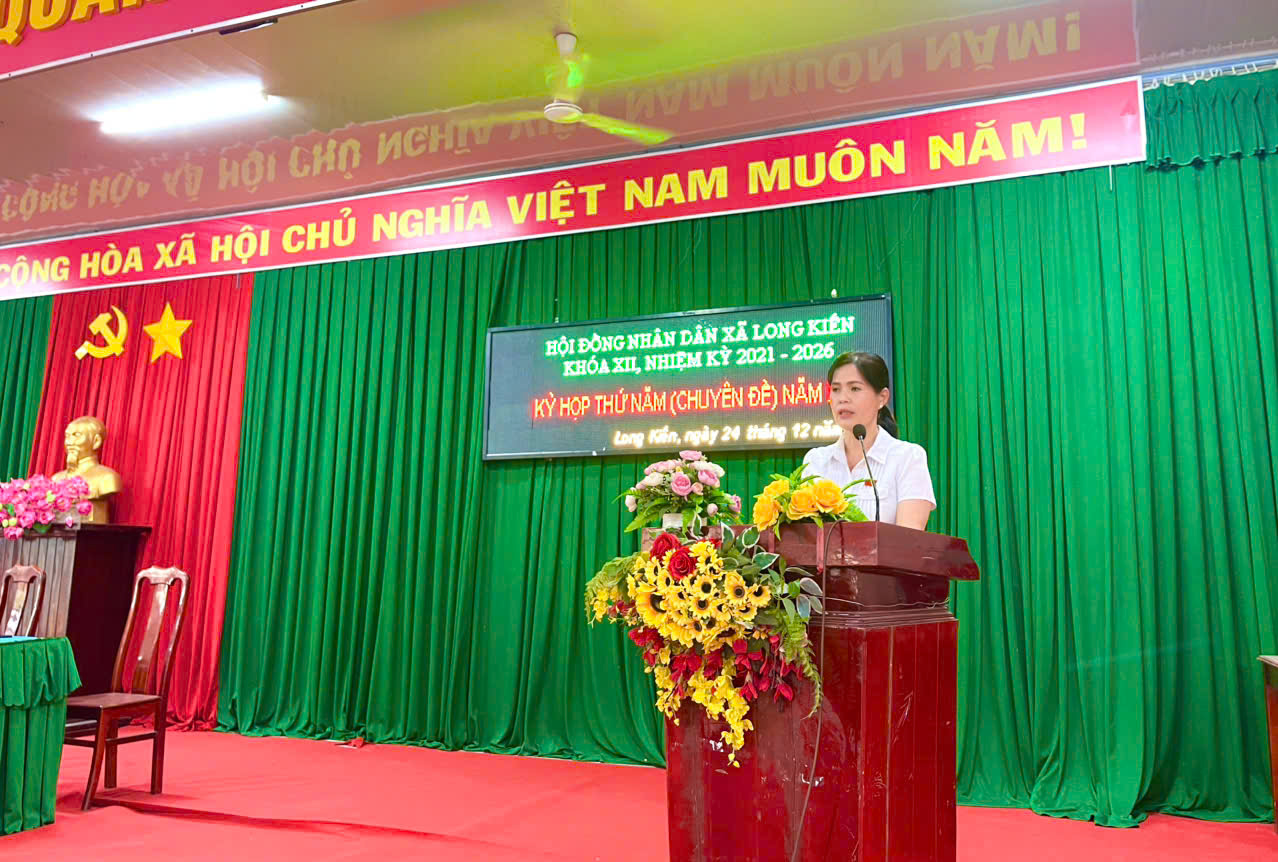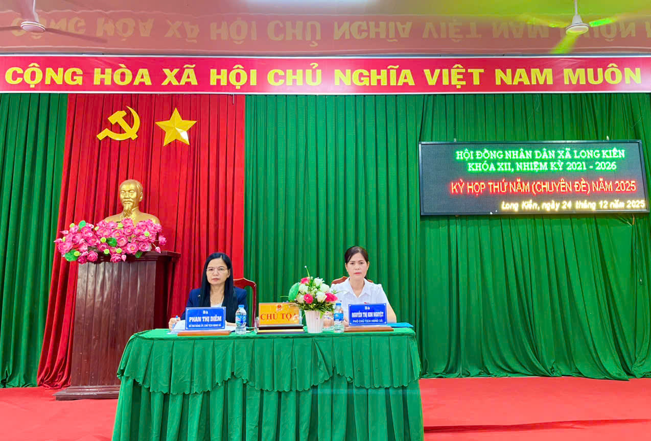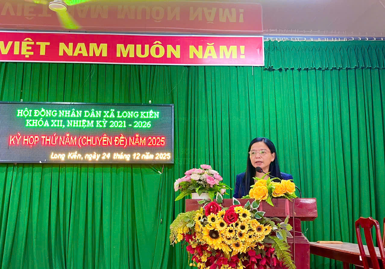 Chiều ngày 24/12/2025, HĐND xã Long Kiến khoá XII, nhiệm kỳ 2021 – 2026 tổ chức kỳ họp thứ 05 (kỳ họp chuyên đề) năm 2025. Đến dự có bà Phan Thị Diễm – Bí thư Đảng uỷ - CT. HĐND xã, ông Ngô Hữu Lễ - Phó Bí thư Thường trực Đảng uỷ, ông Dương Mai Thanh Sơn – CT. UBND xã.