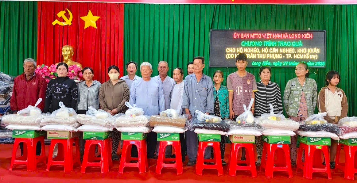 Tại đây, đại diện lãnh đạo xã Long Kiến đã gửi lời thăm hỏi, động viên các hộ gia đình vượt qua khó khăn, ổn định cuộc sống; đồng thời bày tỏ sự trân trọng đối với sự chung tay, góp sức của các nhà hảo tâm trong công tác an sinh xã hội trên địa bàn.