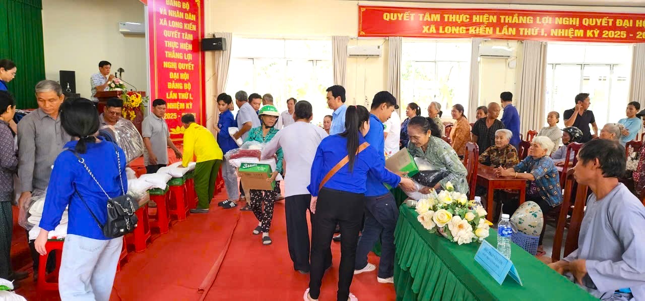 Vừa qua vào ngày 27/12/2025, Ủy ban Mặt trận Tổ quốc Việt Nam xã Long Kiến tổ chức phát quà cho hộ nghèo, cận nghèo và hộ có hoàn cảnh khó khăn trên địa bàn xã. Tham dự có ông Ngô Hữu Lễ – Phó Bí thư Thường trực Đảng ủy xã; ông Lê Văn Hiền - Chủ tịch Ủy ban MTTQ Việt Nam xã.