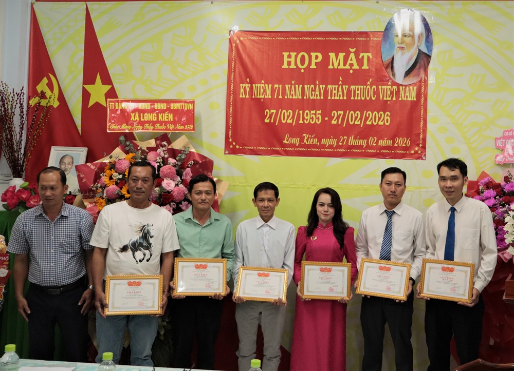Chiều ngày 27/02/2026, Trạm Y tế xã Long Kiến long trọng tổ chức buổi họp mặt kỷ niệm 71 năm ngày Thầy thuốc Việt Nam (27/02/1955 – 27/02/2026). Tham dự có ông Ngô Hữu Lễ - Phó Bí thư Thường trực Đảng uỷ xã, ông Hồ Chí Cường – Uỷ viên Thường vụ - PCT. UBND xã cùng toàn thể cán bộ, viên chức trạm Y tế xã.