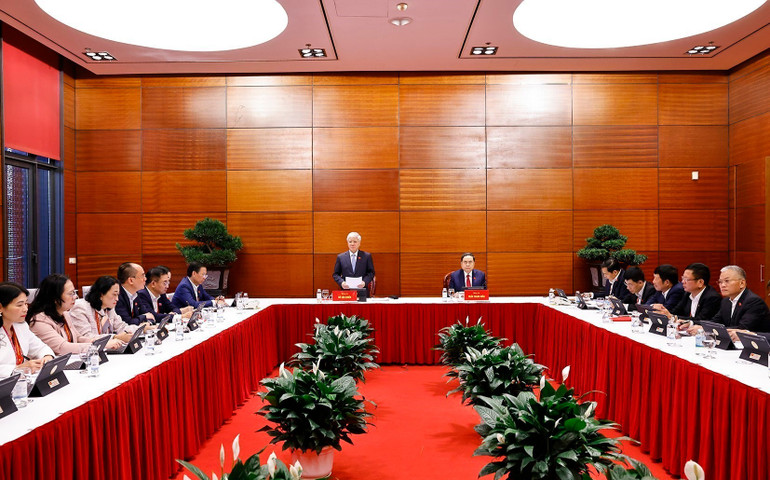 Tổng Bí thư Tô Lâm phát biểu thảo luận tại Đoàn. (Ảnh: TTXVN)