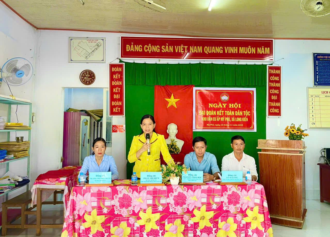 Sáng ngày 16 tháng 11 năm 2025, trong không khí tưng bừng, phấn khởi chào mừng kỷ niệm 95 năm Ngày thành lập Mặt trận Dân tộc Thống nhất Việt Nam (18/11/1930 – 18/11/2025), Ban vận động ấp Mỹ Phú, xã Long Kiến long trong tổ chức Ngày hội Đại đoàn kết toàn dân tộc (đây là ấp điểm của xã). Đến dự có bà Phan Thị Diễm – Bí thư Đảng uỷ - CT. HĐND xã, ông Hồ Chí Cường – PCT. UBND xã cùng đông đảo bà con Nhân dân trên địa bàn xã Long Kiến.