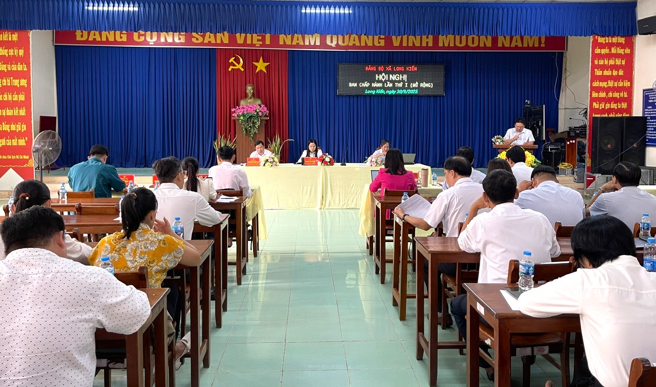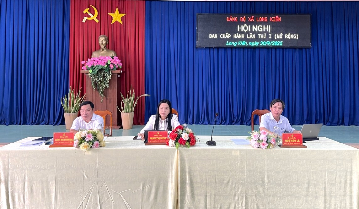 Sáng ngày 30/09/2025 Đảng ủy xã Long Kiến, tỉnh An Giang tổ chức hội nghị Ban chấp hành mở rộng nhằm đánh giá tình hình thực hiện nhiệm vụ chính trị 09 tháng đầu năm và đề ra phương hướng nhiệm vụ 03 tháng cuối năm. Đến dự có đồng chí Phan Thị Diễm – Bí thư Đảng ủy – CT. HĐND xã, đồng chí Ngô Hữu Lễ - Phó bí thư Thường trực Đảng ủy, đồng chí Dương Mai Thanh Sơn – CT. UBND xã.
