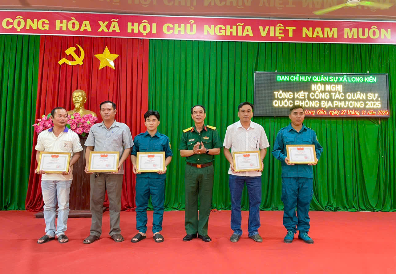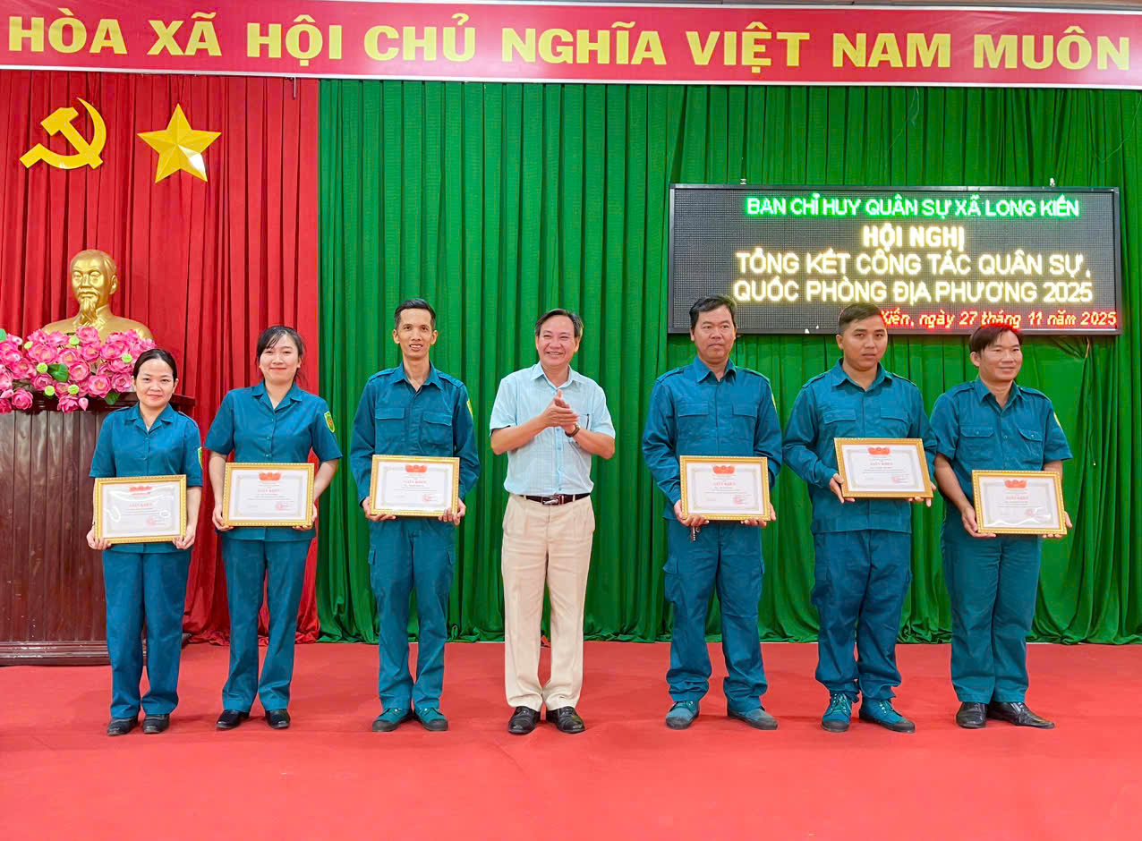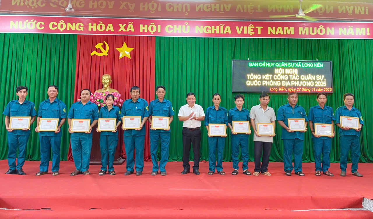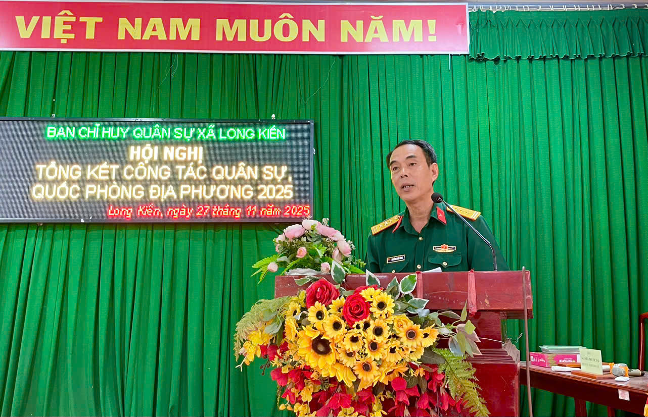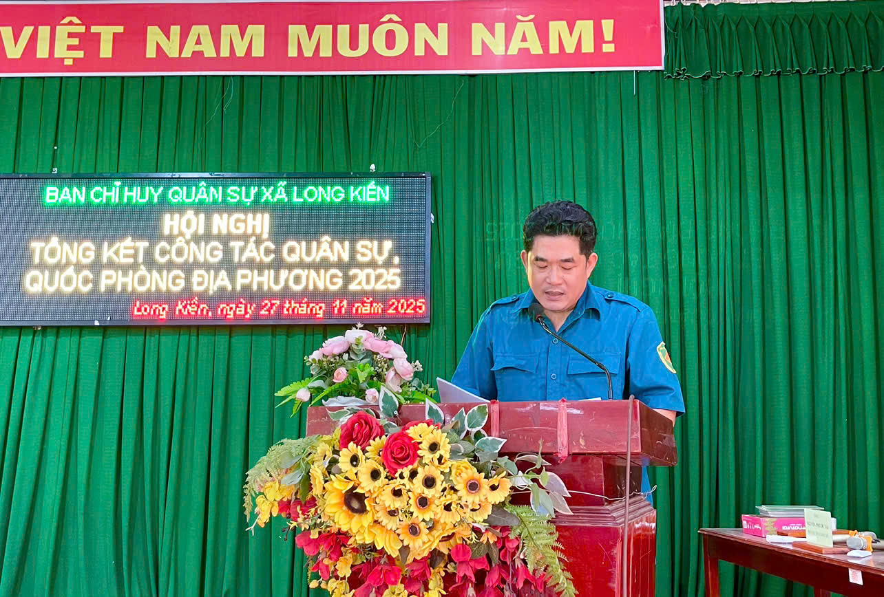 Chiều ngày 27/11/2025, Ban CHQS xã Long Kiến tổ chức hội nghị tổng kết công tác quân sự, quốc phòng địa phương năm 2025. Tham dự hội nghị có đồng chí Thượng tá Nguyễn Quốc Dũng – Phó chỉ huy trưởng Ban chỉ huy phòng thủ khu vực 1 Long Phú, ông Ngô Hữu Lễ - Phó Bí thư Thường trực Đảng uỷ xã, ông Dương Mai Thanh Sơn – CT. UBND xã.