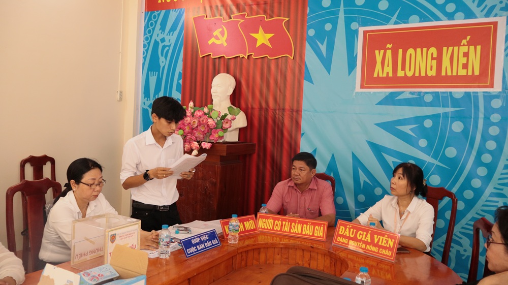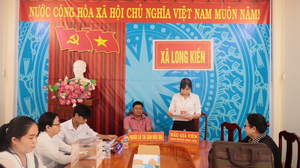 Tại phiên đấu giá, đại diện Trung tâm Dịch vụ đấu giá tài sản tỉnh An Giang thuộc Sở Tư Pháp thông qua mục đích, yêu cầu, nội dung và các quy định của phiên đấu giá. Phiên đấu giá được tổ chức công khai, minh bạch, đảm bảo trình tự, thủ tục theo quy định hiện hành.