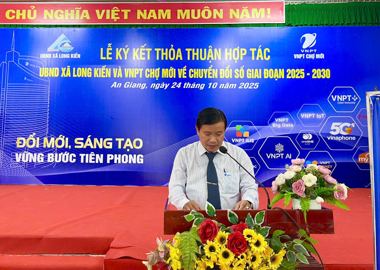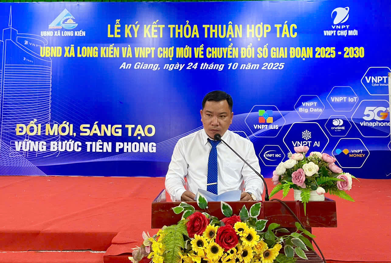 Tại buổi lễ ký kết ông Trịnh Lê Thanh Sang – Giám đốc VNPT Chợ Mới nhấn mạnh với sự quan tâm chỉ đạo của Đảng uỷ, UBND xã cùng với sự đồng hành của VNPT An Giang, chúng ta sẽ cùng nhau hiện thực hoá mục tiêu đưa xã Long Kiến trở thành địa phương điển hình về chuyển đổi số của tỉnh An Giang.